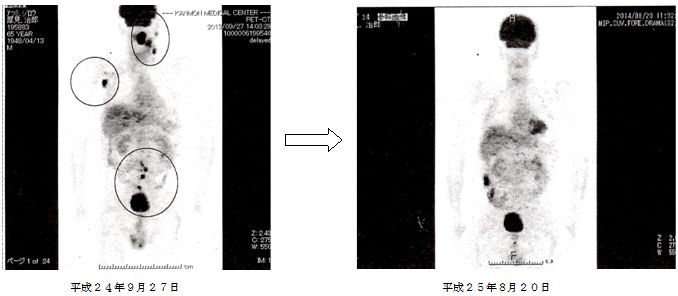 リンパ腫が完全に消えたのには驚きでした。また、糖尿病も改善されています。