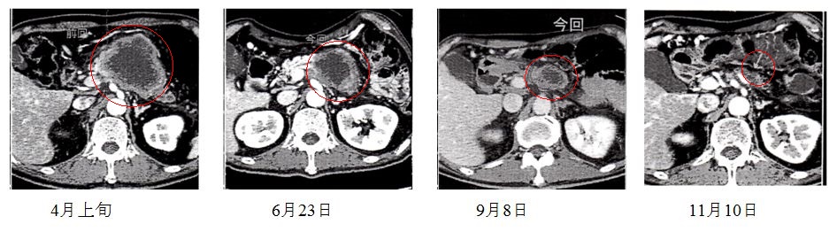 て、6月23日ガンマーカー10が7まで下がり腫瘍が約3分の1まで縮小し、9月の検査でも縮小、11月10日CTの検査にて、すい臓がんが米粒大まで縮小、半信半疑で抗がん剤と併用したサプリとインドの博士の論文が嘘ではなかったことに喜びを感じました。